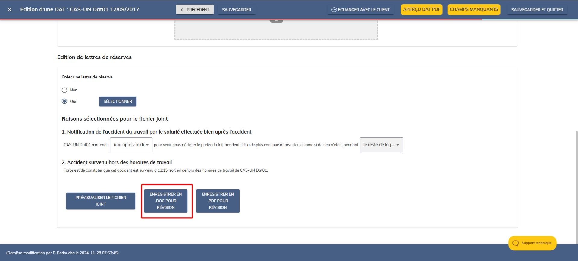 - Les avocats ou consultants pourront récupérer et modifier le fichier si nécessaire, puis le recharger en tant que PDF dans le formulaire DAT.