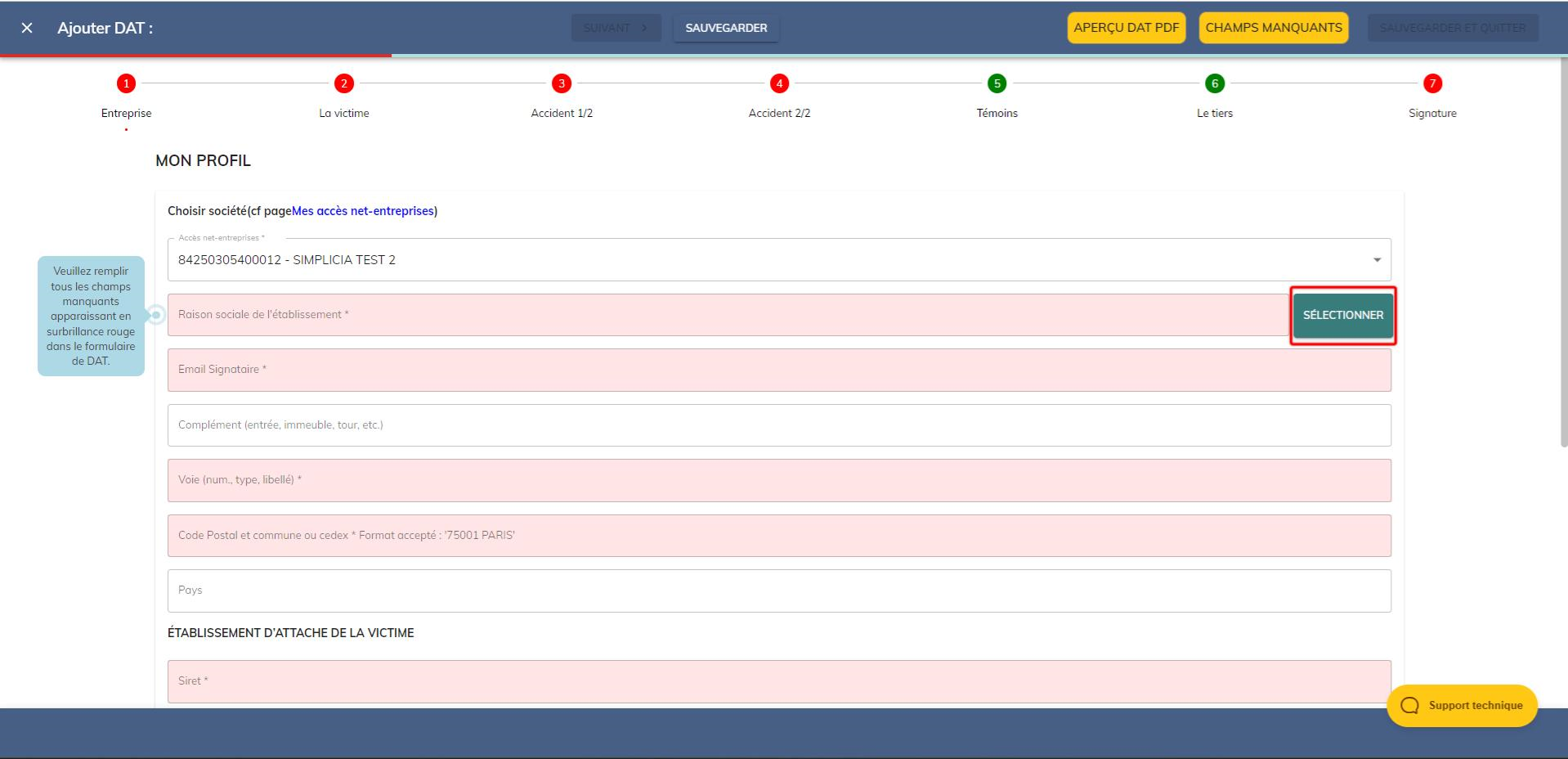 Désormais, vous pourrez choisir la société correspondante à la DAT directement depuis le bouton "Sélectionner".